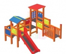 Wszystkie urządzenia wykonane są z drewna klejonego ; kantówki sosnowej, zabezpieczonej przed wpływem czynników atmosferycznych przez malowanie preparatem naturalnym. Elementy konstrukcyjne utwierdzone w gruncie za pomocą kotew stalowych przytwierdzonych do fundamentów punktowych. Zjeżdżalnie ze stali kwasoodpornej. Elementy meta-lowe ocynkowane. Liny atestowane o podwyższonej trwałości. Elementy pełne ; w tym daszki, bariery, osłony, zabezpieczenia zjeżdżalni i inne wykonane z płyty HDPE. Polietylen (HDPE) nie nasiąka wodą, nie pęcznieje, nie rozwarstwia się ani nie łamie. Jest to materiał odporny na trwałe zabrudzenia oraz graffiti. Posiada Atest PZH.
