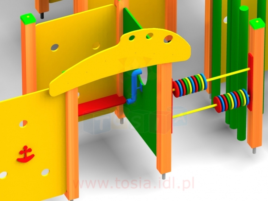 Wszystkie urządzenia wykonane są z drewna klejonego ; kantówki sosnowej, zabezpieczonej przed wpływem czynników atmosferycznych przez malowanie preparatem naturalnym. Elementy konstrukcyjne utwierdzone w gruncie za pomocą kotew stalowych przytwierdzonych do fundamentów punktowych. Zjeżdżalnie ze stali kwasoodpornej. Elementy meta-lowe ocynkowane. Liny atestowane o podwyższonej trwałości. Elementy pełne ; w tym daszki, bariery, osłony, zabezpieczenia zjeżdżalni i inne wykonane z płyty HDPE. Polietylen (HDPE) nie nasiąka wodą, nie pęcznieje, nie rozwarstwia się ani nie łamie. Jest to materiał odporny na trwałe zabrudzenia oraz graffiti. Posiada Atest PZH.